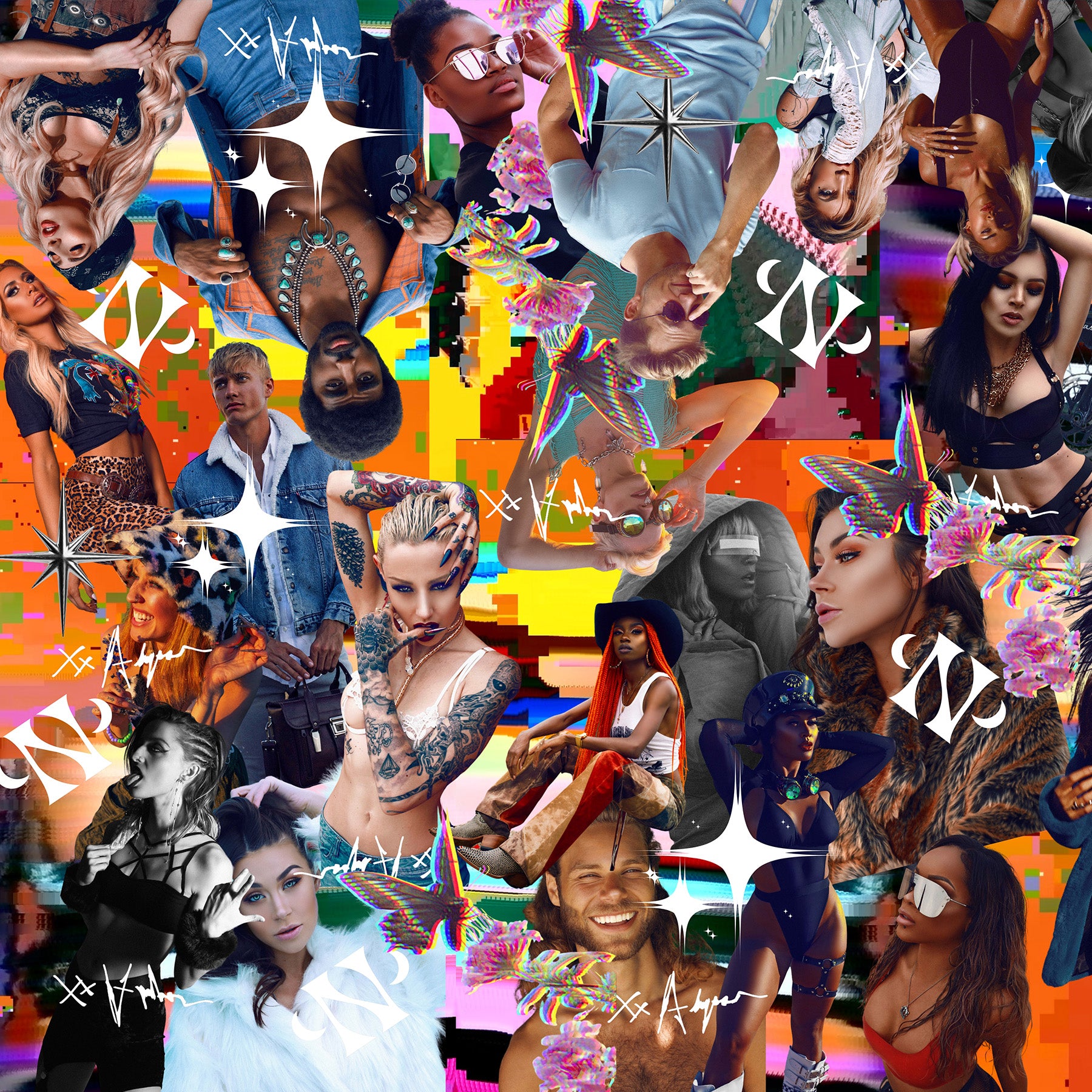 **About Trippy Humanz Lining... if you don't know me (Alyssa) I've been a professional photographer for 15 years before starting Neon Nomade. Trippy Humanz Collage Lining is a montage of many of the humanz I've photographed throughout this time. The collage itself took me 100's of hours to piece together (not to mention the yearzzzz of different visions + relationships + locations around the planet to create each shoot & each image) The collage spans 4.5ft x 3.25ft with each human only being about 1in wide...