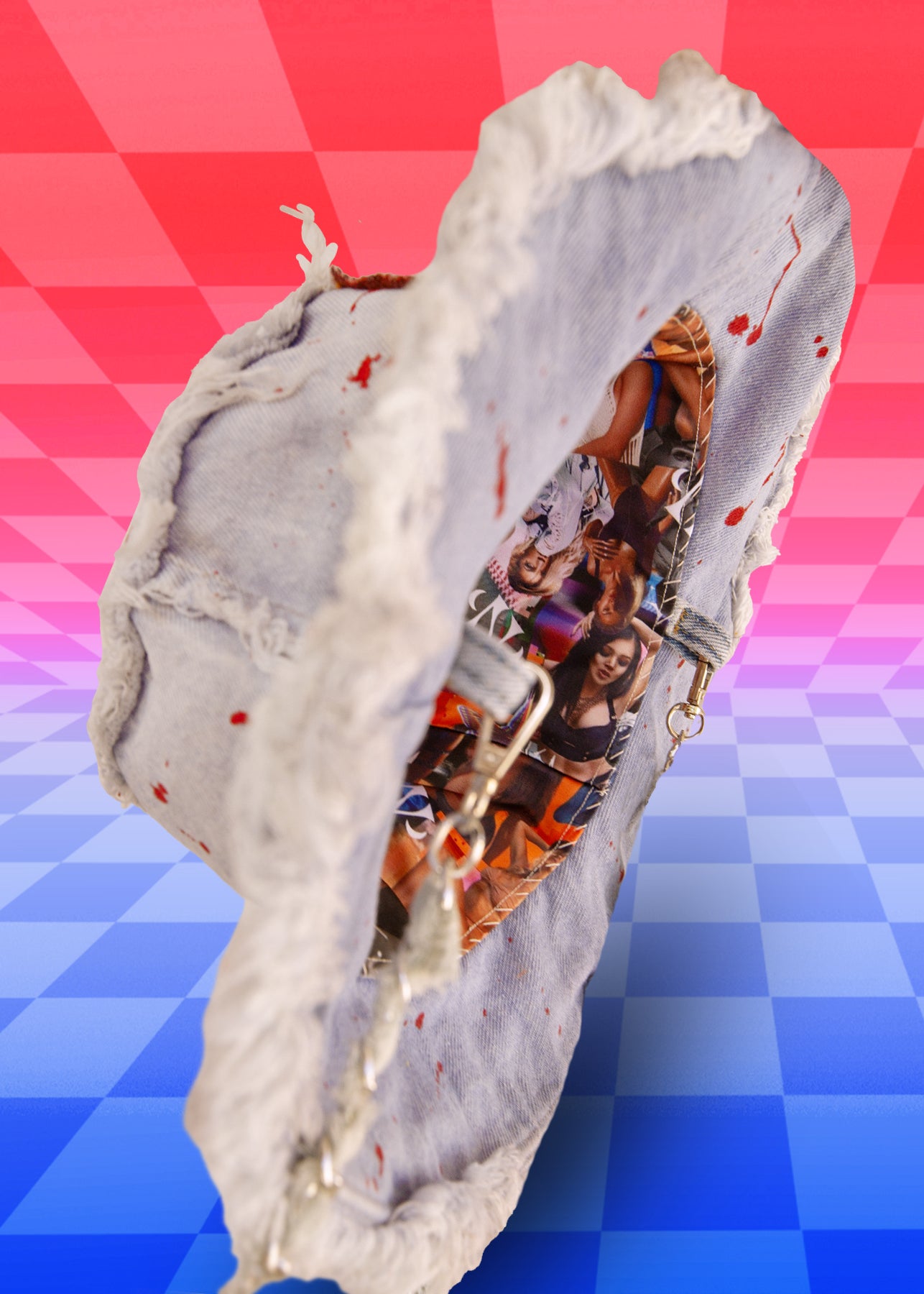 You can snag her in 4 VARIATIONS: either plain & UNLINED for a simple easy fit, or you can add in our Trippy Humanz Collage Lining made from a polyester satin blend & featuring an incognito side-seam stash velcro pocket for your mini duckiez & other goodiez, and then you can also add DENIM TABS with a CLIP ON HAT CHAIN either paired with the plain denim hat or as I call it, DA WHOLE SHABANG with all 3 add onz: Hat + Lining & Chain + Tabs in one!